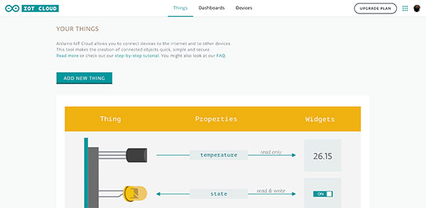 L’Arduino IoT Dashboard funziona con i widget predefiniti, che vedremo a breve, che ti permettono di creare la dashboard velocemente.