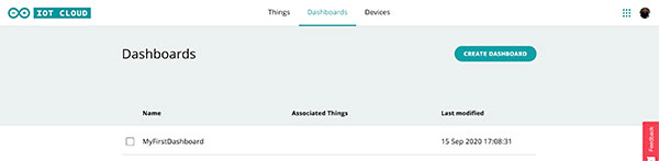La lista delle tue dashboard sarà disponibile nella pagina principale dell’arduino IoT Dashboard: