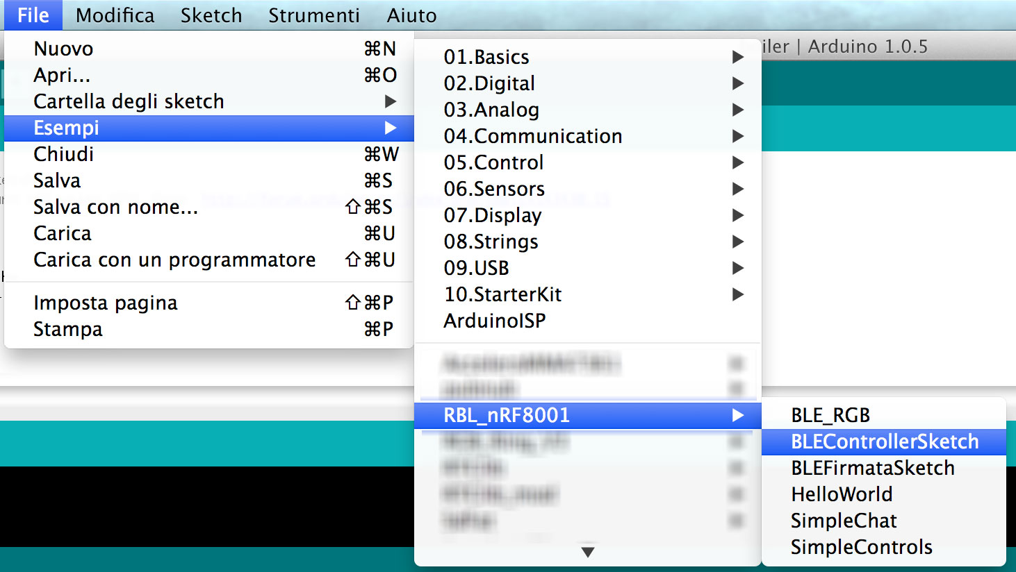 Lo sketch che ho utilizzato per questo tutorial sulla Bluetooth Low Energy Shield led pwm è il medesimo dell’articolo Bluetooth Low Energy Shield – Bleshield che è presente sul sito del produttore della shield tra gli esempi.