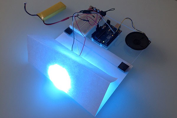 Ecco il risultato finale acceso a cui ho anteposto un foglio perché neopixel sono davvero molto luminosi: