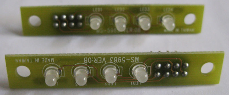 Sono 4 led collegati ad 8 pin, 2 pin per ciascun led, essendo bicolori l’effetto è che se ciascun led applichi positivo e negativo in un verso ottieni l’illuminazione di un colore ( verde o rosso ) se inverti l’alimentazione ottieni l’altro colore, è più difficile spiegarlo che farli funzionare.