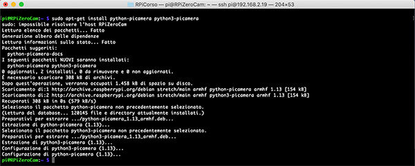 per realizzare il progetto RPi Zero W camera ti servono alcuni software che puoi facilmente installare mediante ssh una volta avviato raspbian.