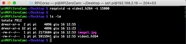 se vuoi produrre un video di 15 secondi, ad esempio, con la tua Zero W camera puoi eseguire il comando: