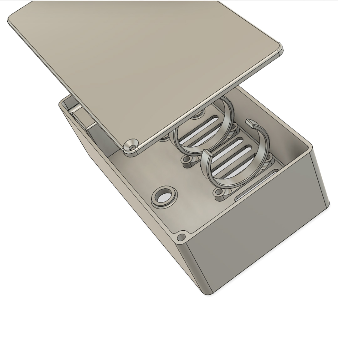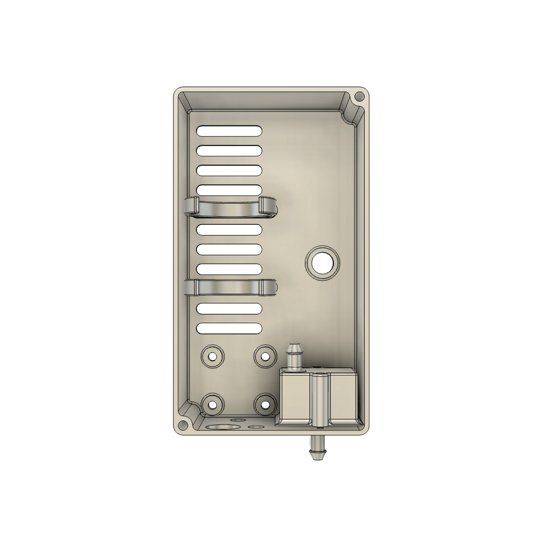 il box è la base in cui saranno montati i supporti per la pompa di aspirazione; tali supporti sono stati progettati per essere stampati in ABS in modo che la flessibilità del materiale aiuti a compensare le vibrazioni del motore: